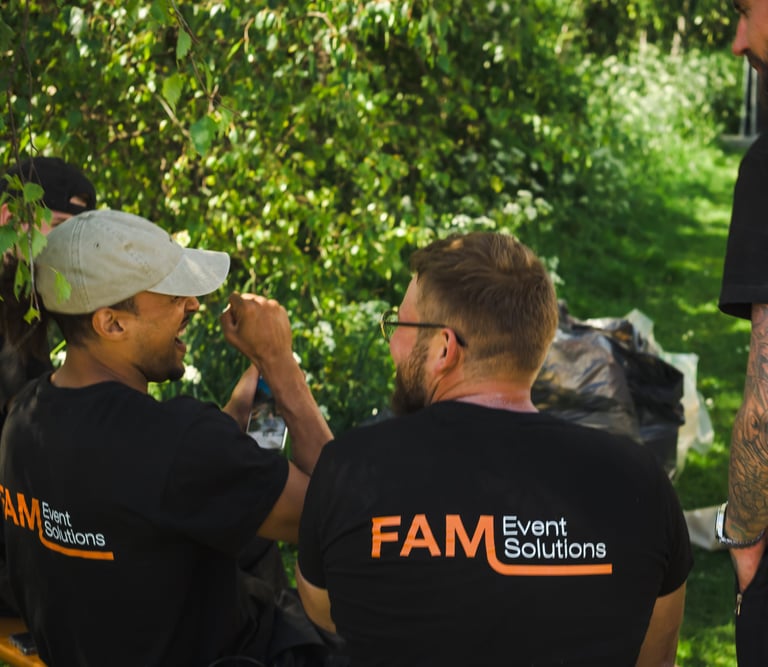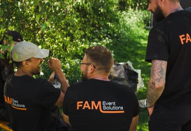 Fam Event Solutions er en dansk virksomhed med base i København, som tilbyder professionel mandskabsudlejning til events og håndværksprojekter. Selvom vi er nystartede som selskab, bygger vi på over 15 års samlet erfaring i branchen. Vores styrke er at levere stabile, dedikerede og arbejdsomme folk – klar til både små og store opgaver. Vi arbejder i hele Danmark og Norden og går aldrig på kompromis med kvalitet og samarbejde.